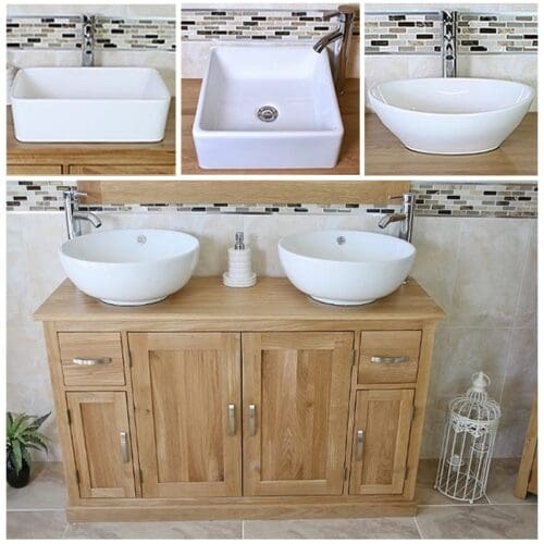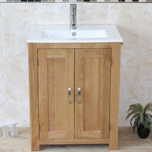 Solid Wooden Oak Bathroom Vanity Unit | Oak Top Unit Ceramic Basin Choice 310GCBC