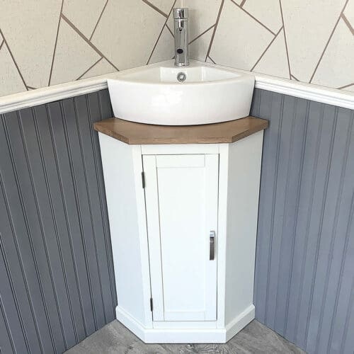 Grey Painted | Bathroom Corner Compact Vanity Unit | Ceramic & Glass Basin 501GCBC
