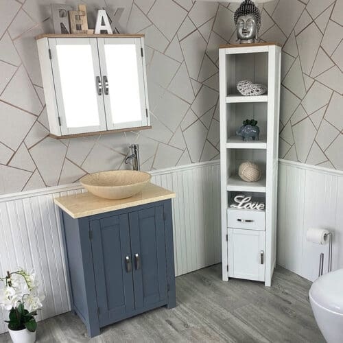 Then of course, if you’re working with a larger, master bathroom, we have a grand selection of large bathroom vanity units to choose from. For his & hers, we have double basin oak & stone top vanity units, all of which come with your choice of materials. Want to create a more luxurious feel in your bathroom? Then we’d recommend a cream marble vanity unit. Or if you prefer the more traditional look, then classic ceramic is always the way to go!