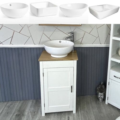 Slimline Bathroom Cabinet Vanity Unit | White Painted Furniture | Ceramic Sink Tap Plug 308PCBC