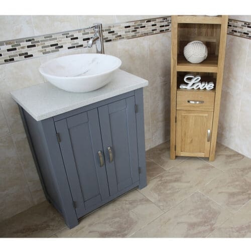 Slimline Bathroom Cabinet Vanity Unit | Solid Oak Furniture | Ceramic Sink Tap Plug 308CBC