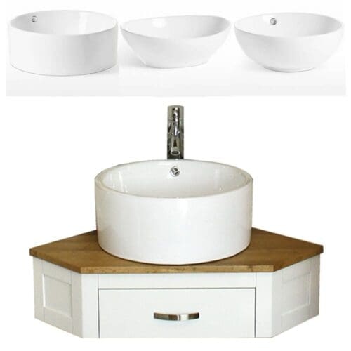 Oak Top White Painted Wooden Corner Vanity Basin Unit 501PWCBC