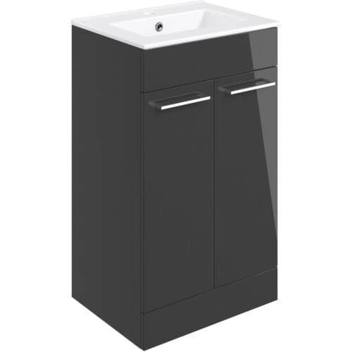 Jupiter 510mm Floor Standing 2 Door Basin Unit w/Basin – Anthracite Gloss