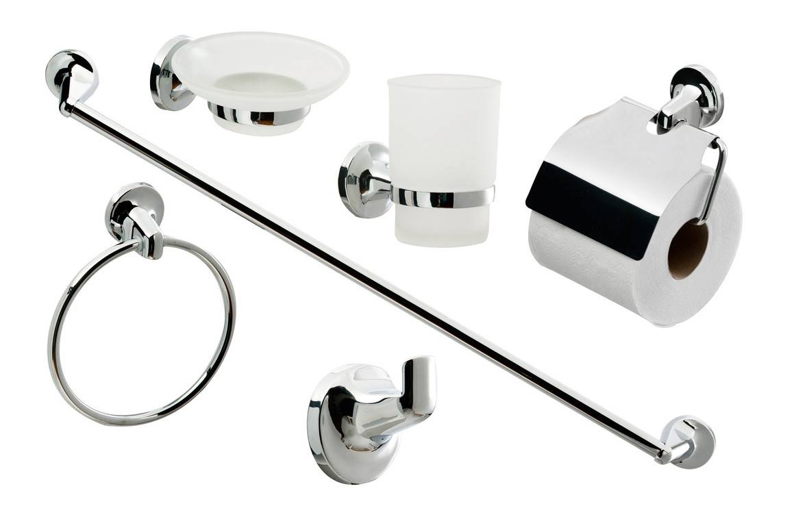 Includes Toilet Roll Holder Towel Rail Soap Dish Toothbrush Holder and Robe Hook