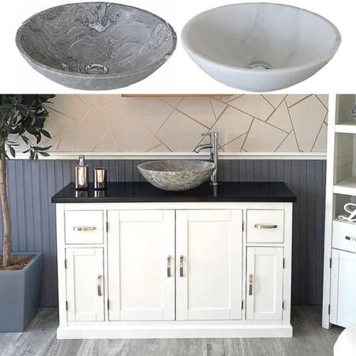 Off White Painted Black Quartz Top Stone Basin Choice 402PBQSBCX1 | Round White Marble