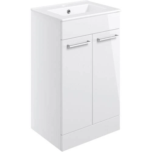 510mm Floor Standing 2 Door Basin Unit & Basin – White Gloss