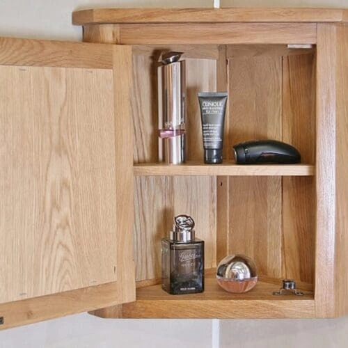 Solid Oak Wall Mounted Corner Bathroom Cabinet 601