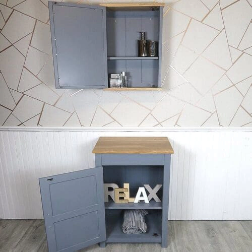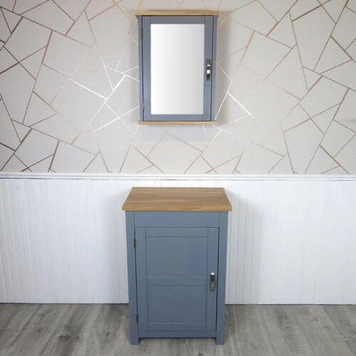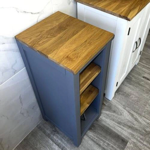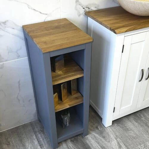 Slimline Bathroom Cabinet Vanity Unit | Grey Painted Furniture | Solid Oak Top 308G