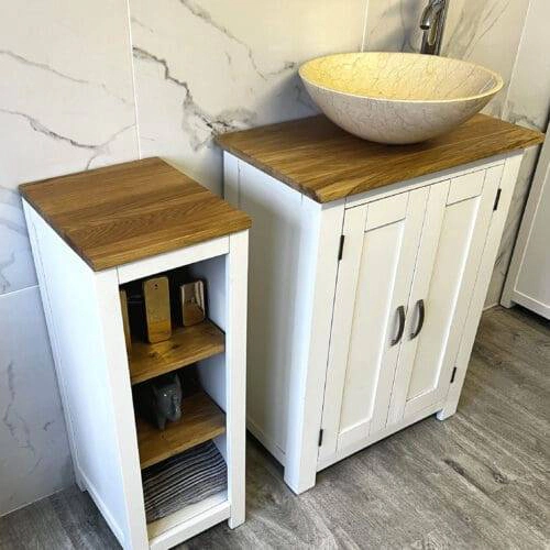 Enhance your bathroom with our expertly crafted bathroom cabinets, including wall-mounted units, freestanding storage, and mirror cabinets. Designed with oak, painted finishes, and stone tops, each cabinet offers smart storage solutions for toiletries, towels, and daily essentials. Ideal for both small en-suites and spacious master bathrooms, our cabinets combine durability, aesthetic appeal, and space efficiency—making them a perfect match for modern and traditional interiors alike.