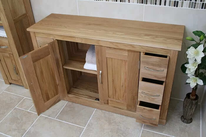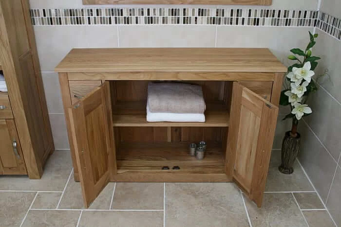 - One large cupboard with adjustable shelves.