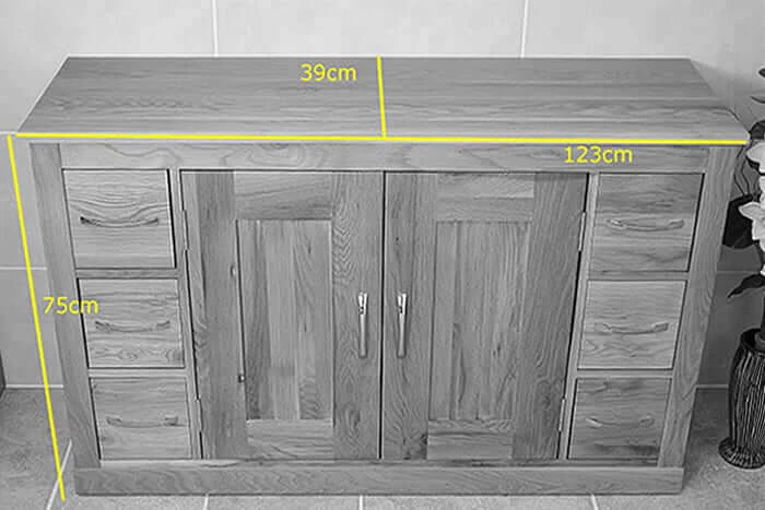 - The overall dimensions of the sideboard are H75 x W123 x D39 cm.