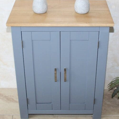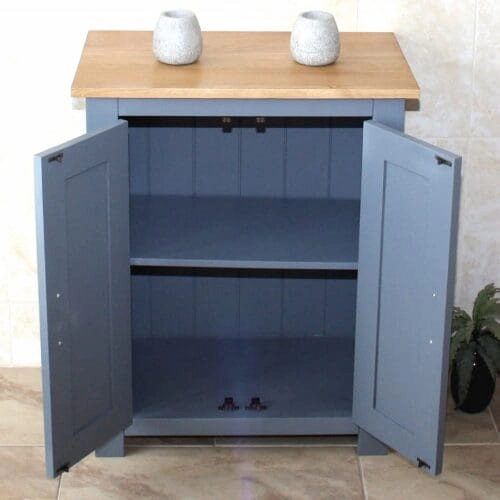 - Stunning painted wooden base, oak topped slimline corner unit.