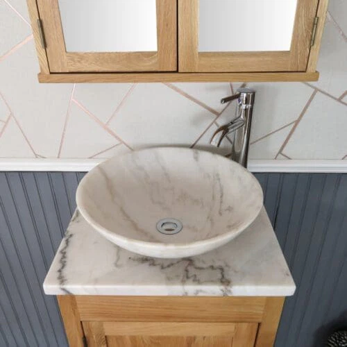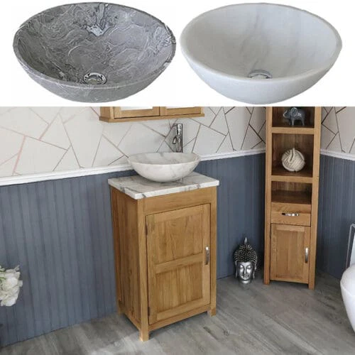 Slimline Bathroom Cabinet Vanity Unit | Solid Oak Furniture | Inset Sink Tap Plug 308INSET