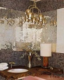This photo is of a fabulous & glamorous bathroom, which we love! This image is more achievable in the home. This is due to the bathroom being smaller in size, but the additional sparkle added via the bathroom fittings really creates something very special in the space. So, why not go glam and decorate your bathroom with sparkle and shine to give a fun and feminine feel?! It looks great and is easy to do! Glitz is also added to the room via the light fitting. It is a great way to add style to your bathroom in a way in which you would not usually think of! Images via Funky Bathrooms.