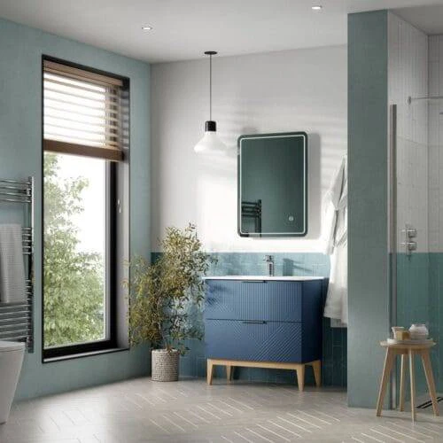 Vega 810mm Floor Standing 2 Drawer Basin Unit & Maple Oak Effect Worktop – Matt Smoke Blue