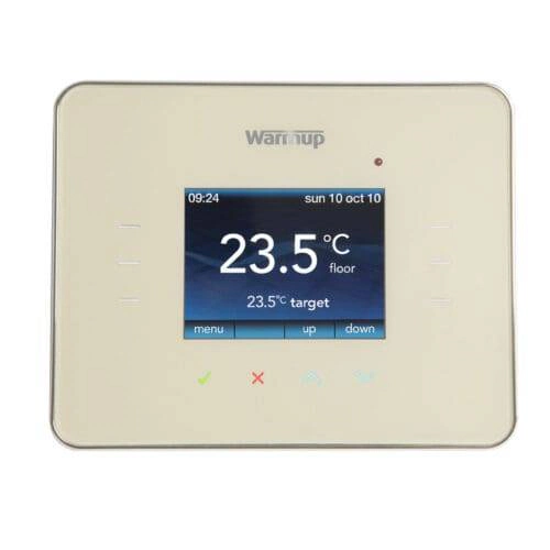 The Warmup 3iE™ Energy-Monitoring Programmable Thermostat is the perfect way to maximise on the energy-efficiency of your underfloor heating system. This thermostat is available in black or cream, and comes with a 3 year guarantee. With its easy-to-use interface, you can program your desired temperature and schedule, so you can always be comfortable at home. Plus, the built-in energy monitor lets you see how much energy you’re using, so you can make adjustments to save money on your heating bill. Order yours today and start enjoying the benefits of an efficient underfloor heating system!