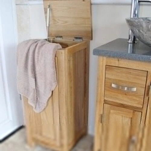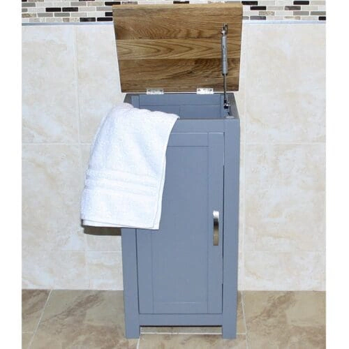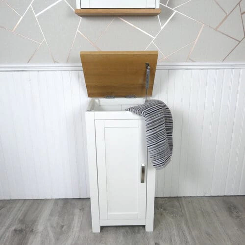 Grey Painted Solid Oak Top Laundry Bin 480G