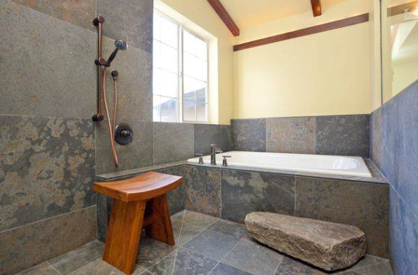 This bathroom is simply gorgeous and simplistic and as you can see – incredibly easy to maintain. This ‘wet room’ style is perfect as with a decent drainage system you won’t even need to clean up after yourself when you’re finished! As you’ll need to do is whip a mop around now and again to keep it nice and clean. Notice the slap of rock that has been utilised as a step into a bathtub: simple yet affective. An ideal choice for those with limited space who are looking to keep the clutter to a minimum, all you’ll need is a few vanity units to store all of your toiletries and you’ll be able to maintain that clutter free environment.