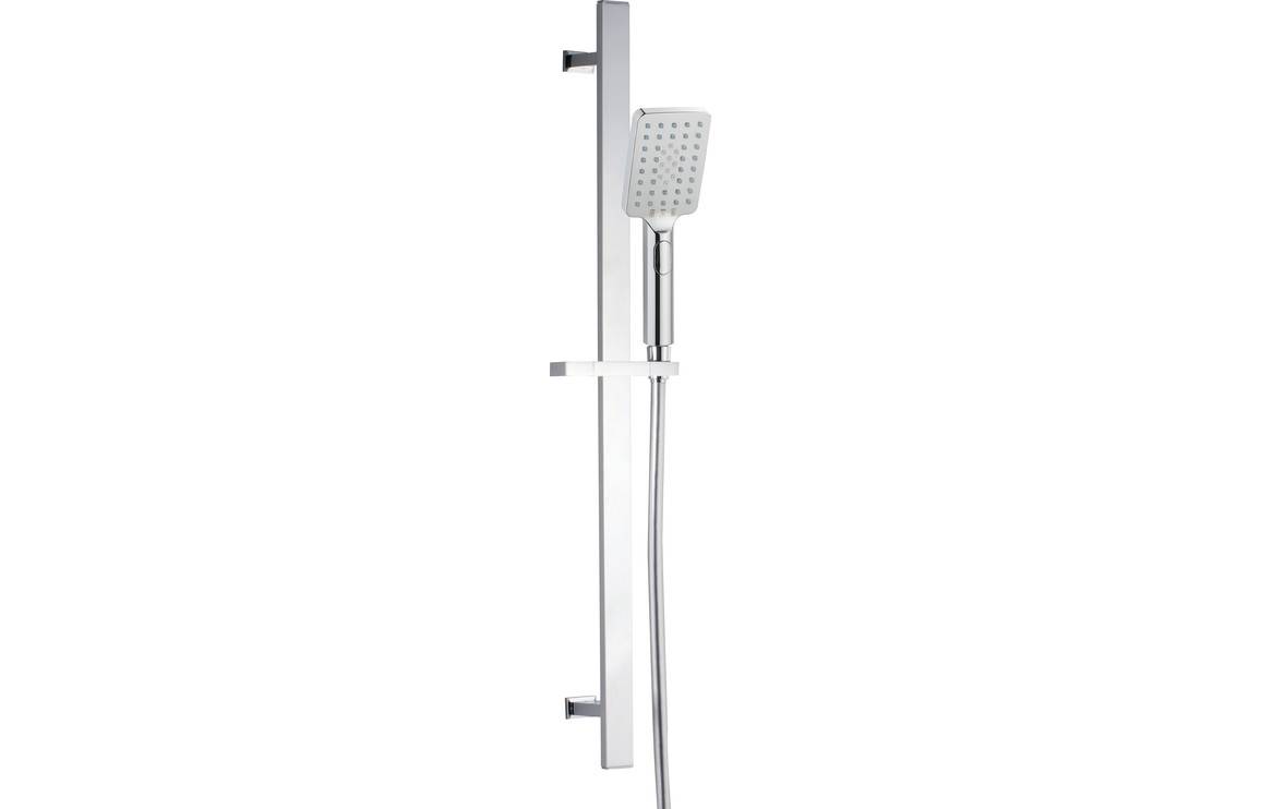 Ascari Push Button Shower Kit – Chrome with 10 Years Guarantee on Body and Finish 3 Years for Parts Guarantee. Stainless Steel riser with brass brackets with 3 mode push button handset by Bamstore