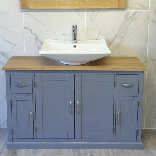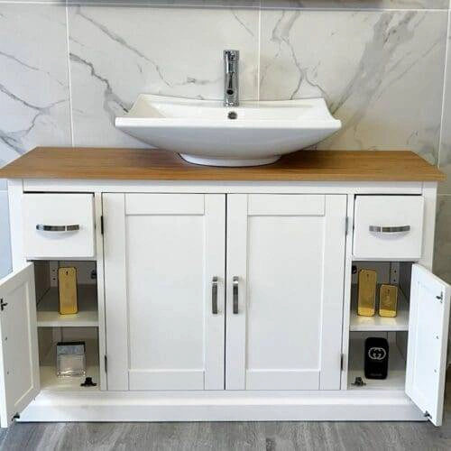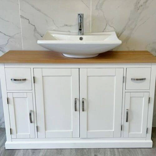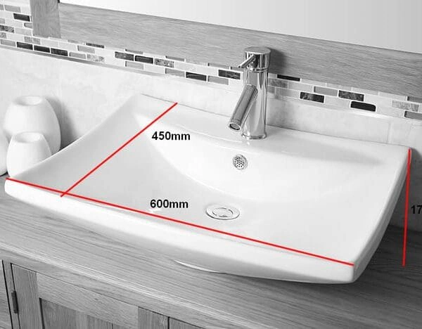 Oak Top Wooden Unit Ceramic Basin Choice 603CBC | Tap Mounted Rectangle Ceramic