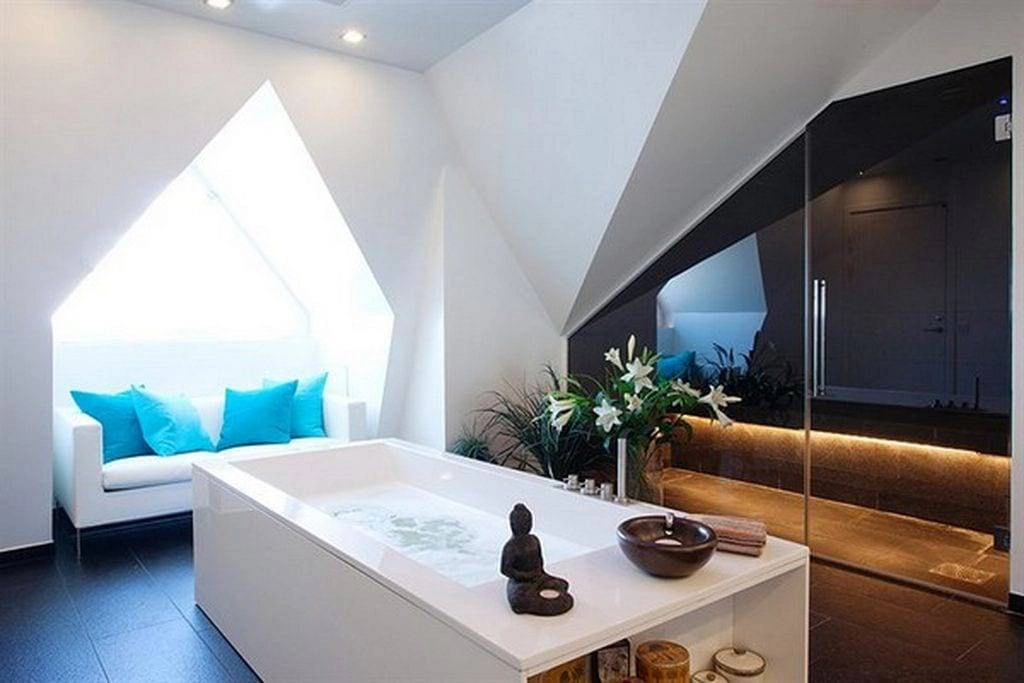 Experiment with the lighting by placing behind seating areas for a modernistic and sleek area to sit back. This creates a striking focal point and gives a powerful finish to your bathroom.