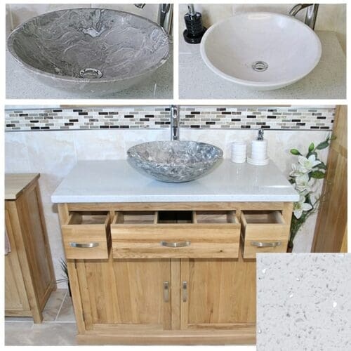 Discover the perfect cloakroom or corner vanity units from sleek single vanity units to luxurious double vanity units at Bathrooms & More Store. Choose from premium solid oak, elegant marble, and chic stone finishes, each crafted for enduring style, practicality, and effortless maintenance.