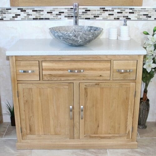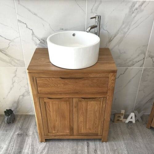 Slimline Bathroom Cabinet Vanity Unit | Solid Oak Furniture | Inset Sink Tap Plug 308INSET