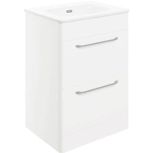 Taurus 594mm 2 Drawer Floor Unit (exc. Basin) – White Gloss comes with 5 Years Guarantee. In a Modular Contemporary style, Basin Unit (No Top) with a White Gloss Fascia