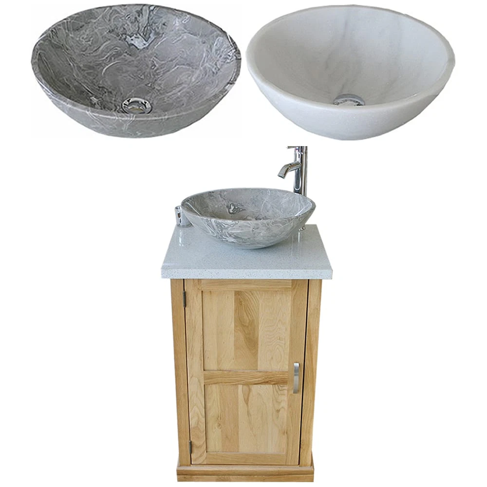 - A beautiful heavy marble bowl of choice, see the dimensions of each basin below: