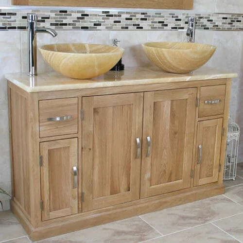 Double Basin Vanity Unit with Oak Top & Two White Marble Basins of your Choice