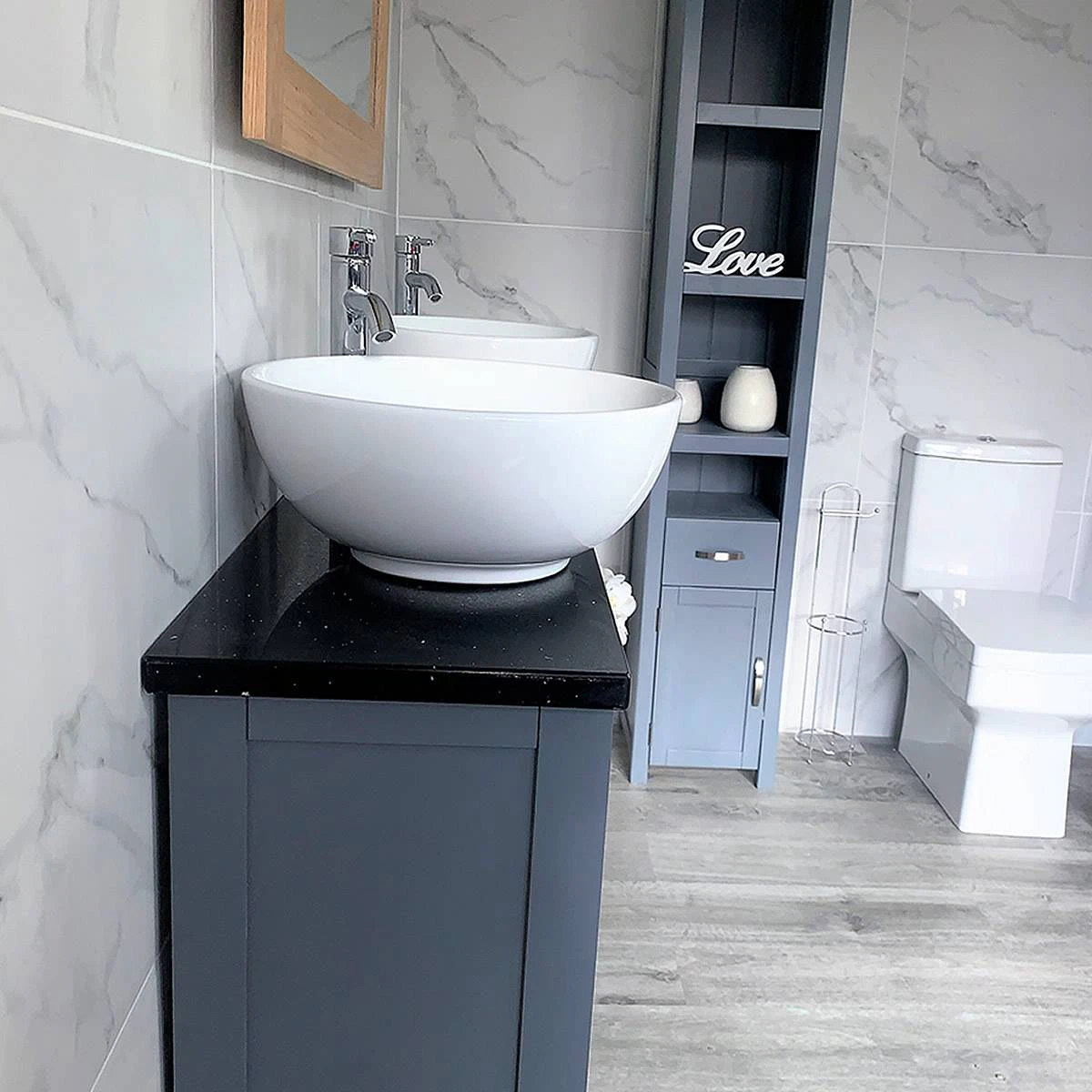 - Two ceramic bowls of choice, see the dimensions of each basin below: