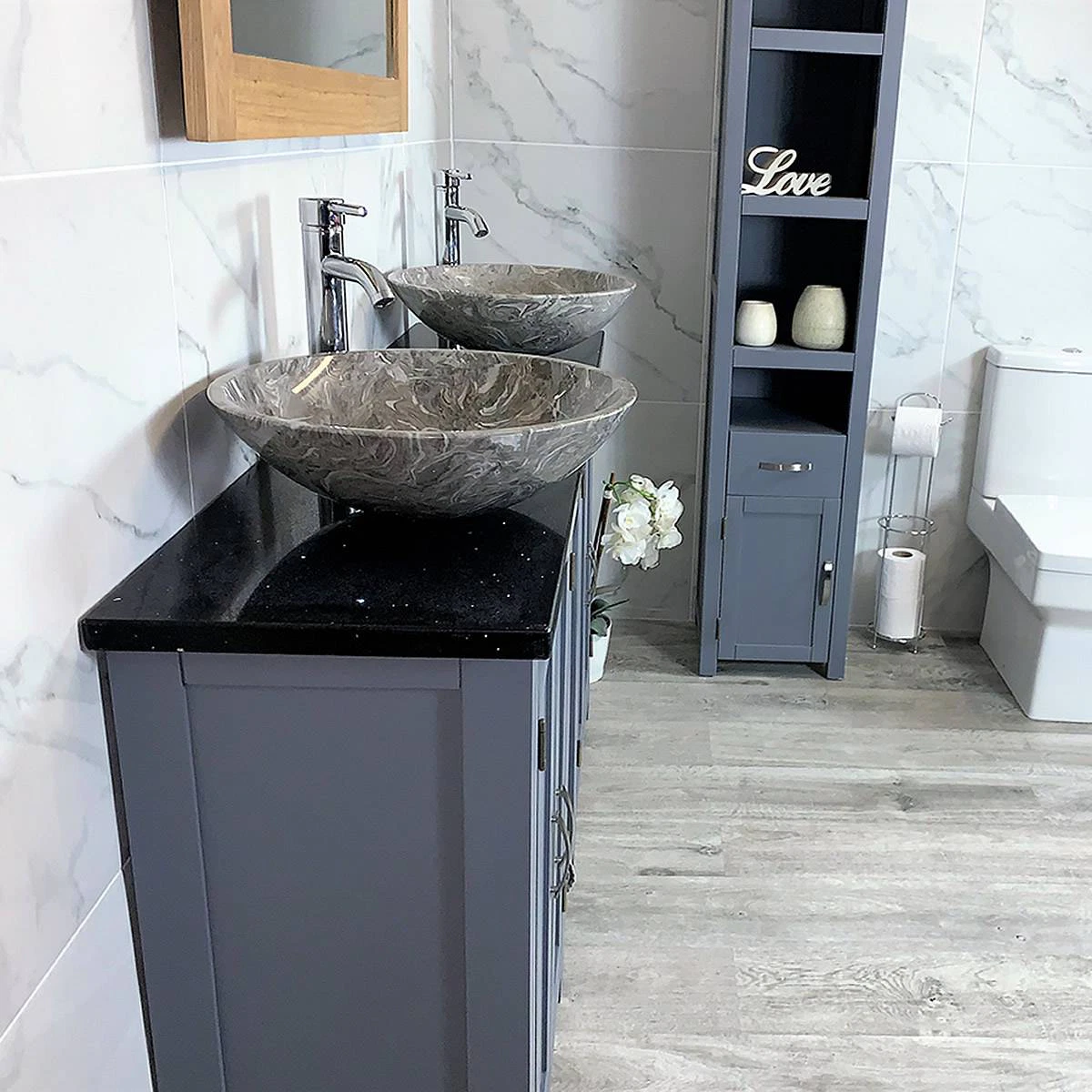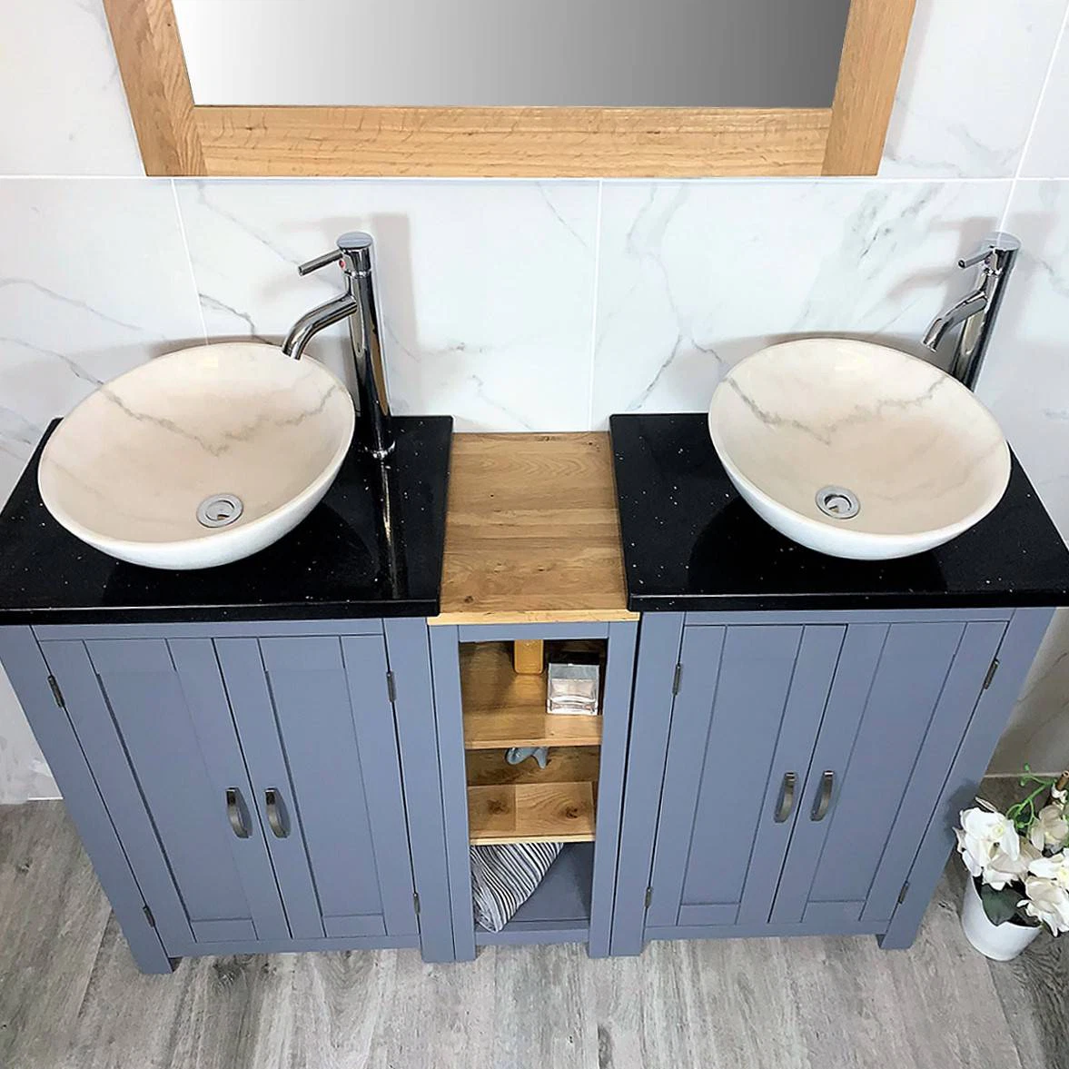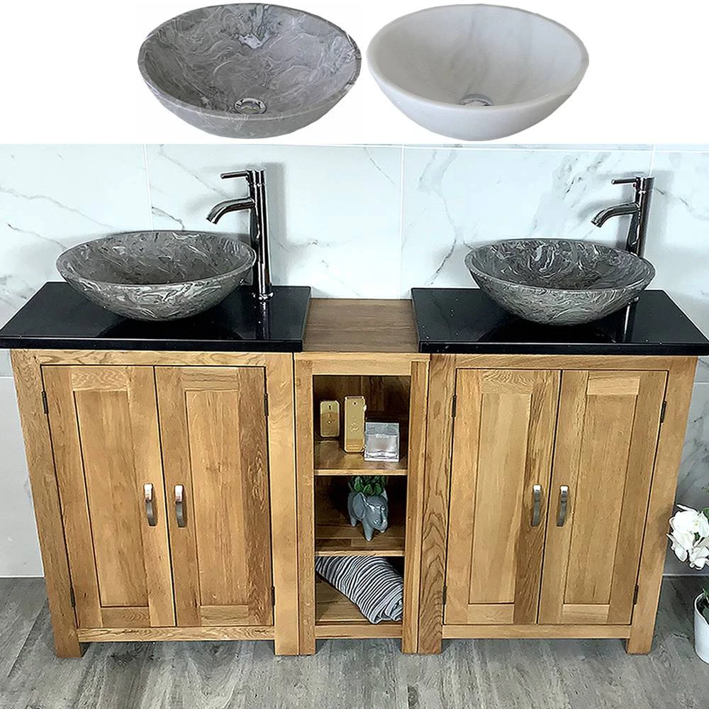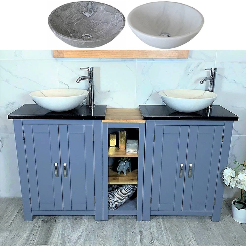 - Two beautiful heavy marble bowls of choice, see the dimensions of each basin below: