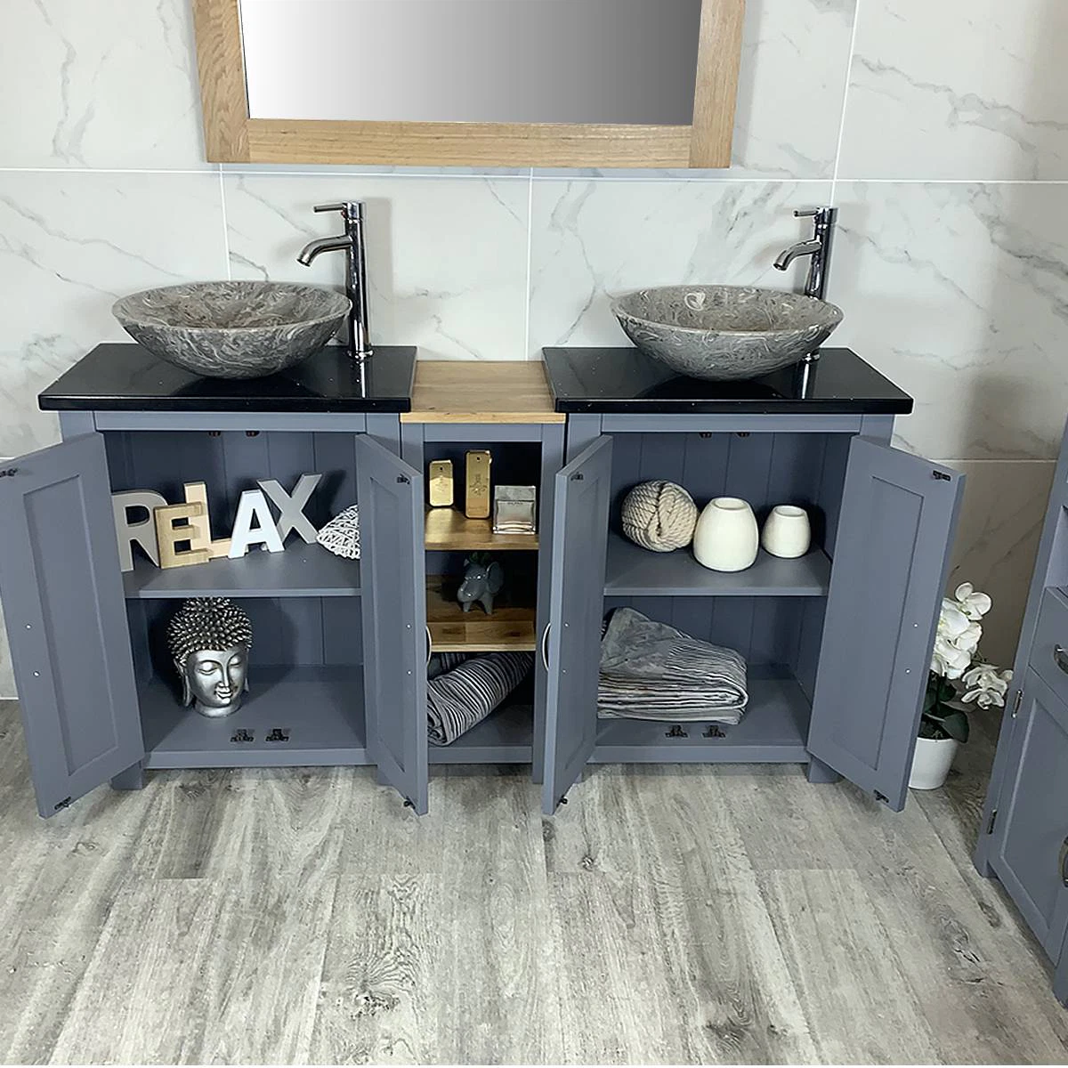 - Two stunning double pre-drilled sparkling black quartz work tops.