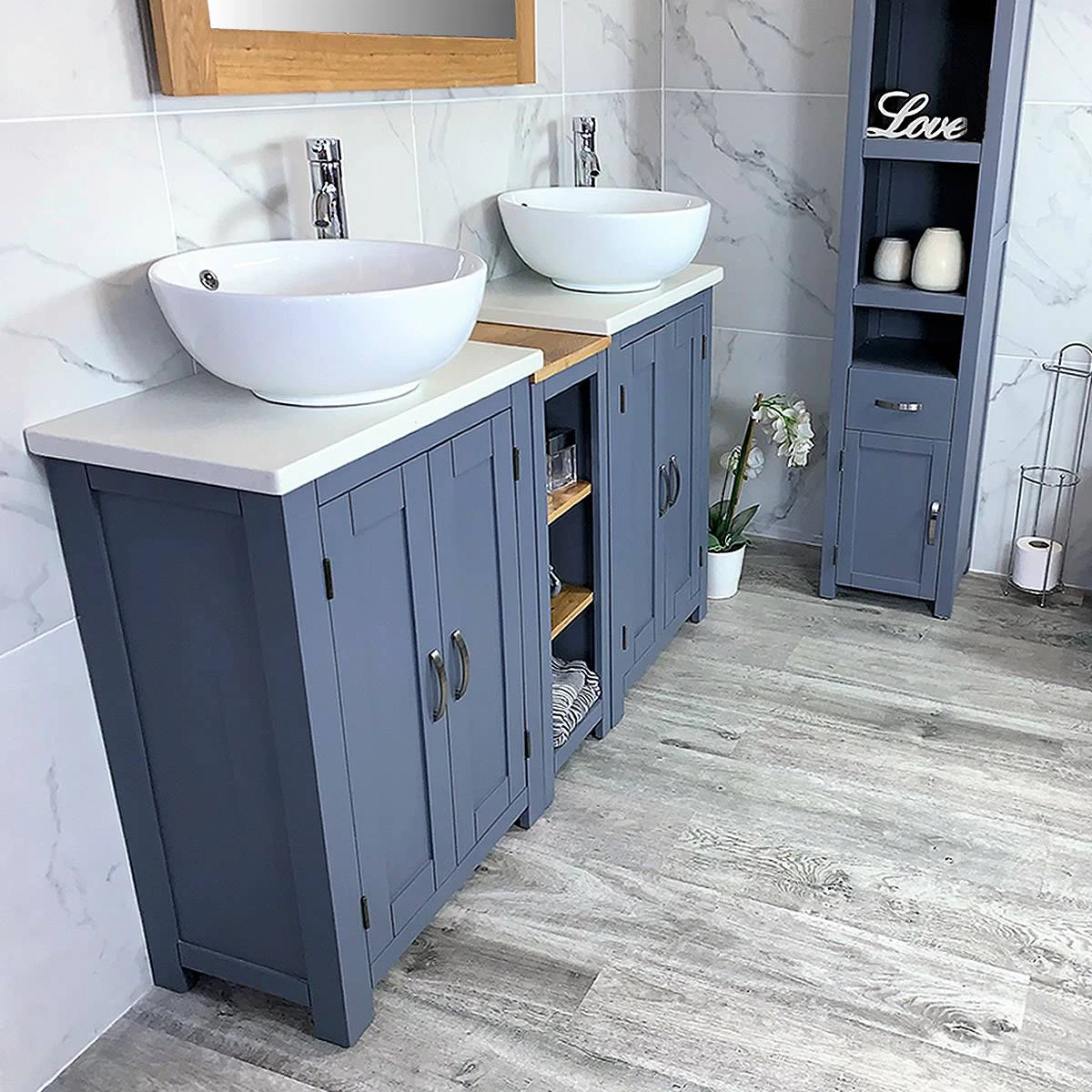 Direct from Bathrooms and More Store is this absolutely stunning contemporary designed hand crafted beautiful grey painted double vanity.