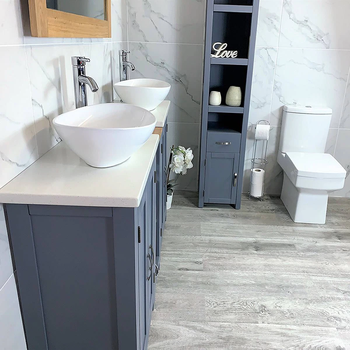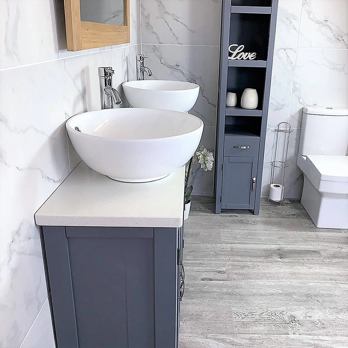 Bathroom Vanity Unit Sink Washstand Slimline Grey Painted White Quartz Worktop Basin Tap 311GWQCBC