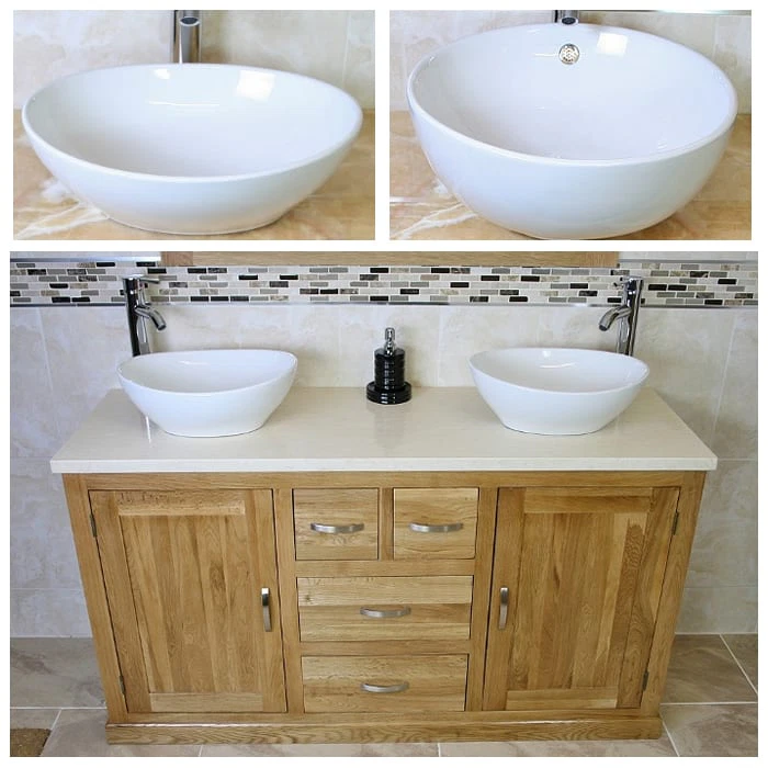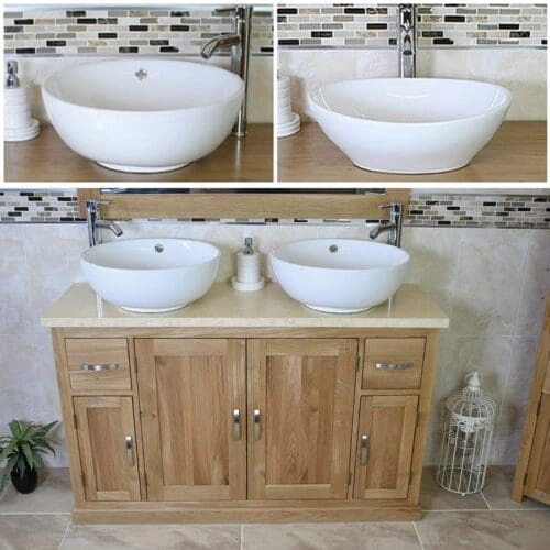 - Two ceramic bowls of choice, see the dimensions of each basin below: