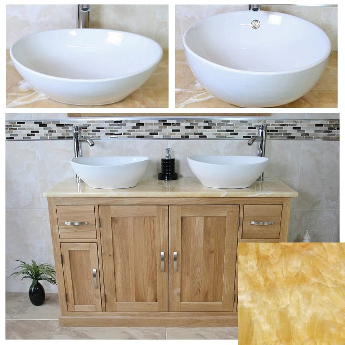 - Two ceramic bowls of choice, see the dimensions of each basin below:
