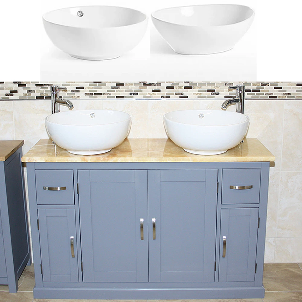 - Two ceramic bowls of choice, see the dimensions of each basin below: