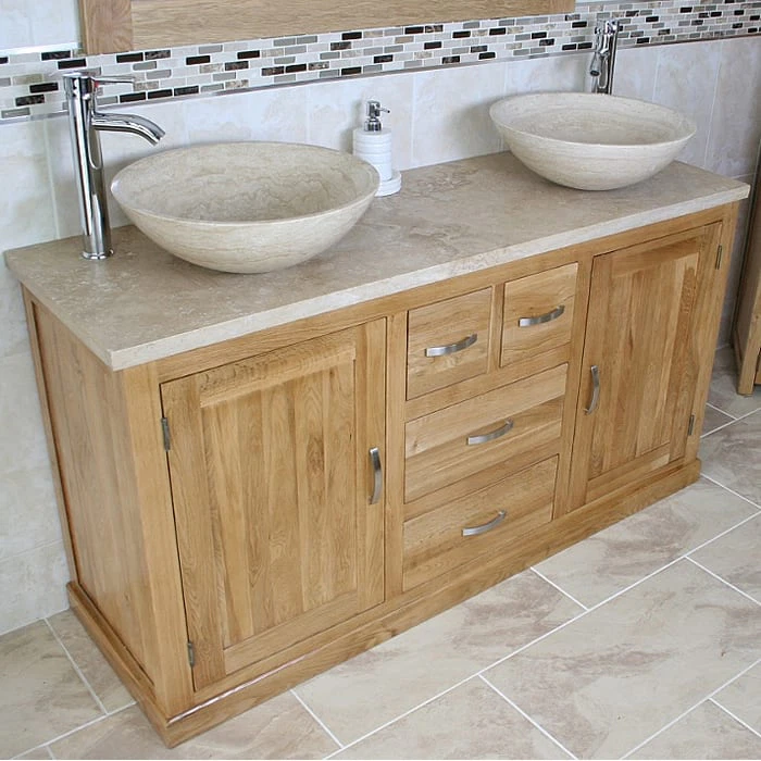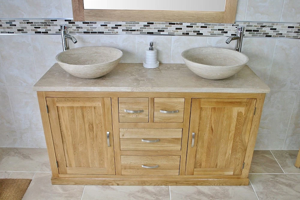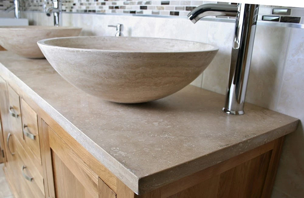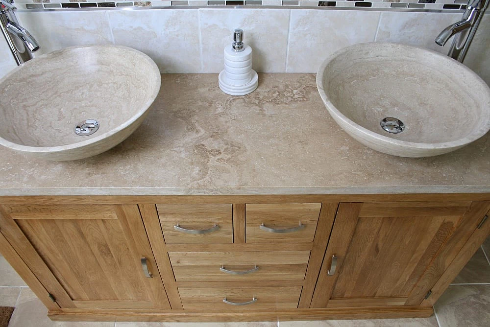 • Two round curved travertine bowls, see the dimensions of basin below: