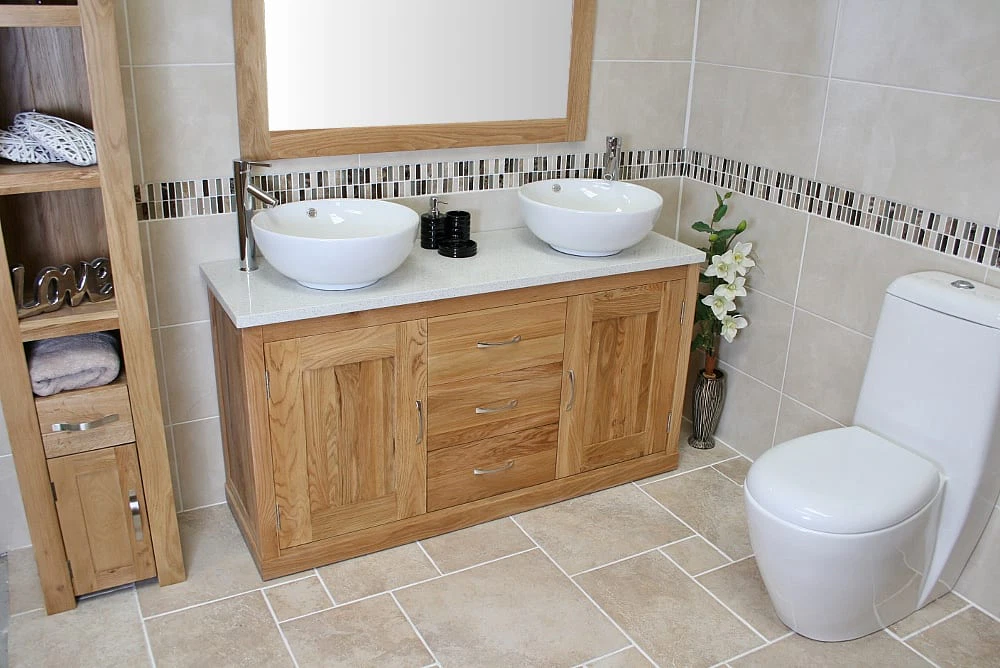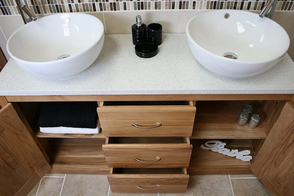Hand made solid oak bathroom vanity units when combined with natural stone are not only functional and durable but are a beautiful piece of furniture in their own right. The ultimate in bathroom luxury has to be a double vanity unit.