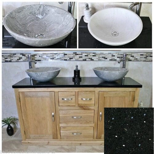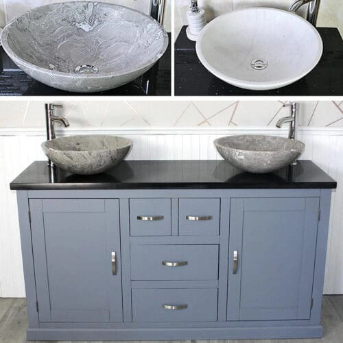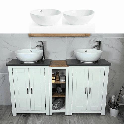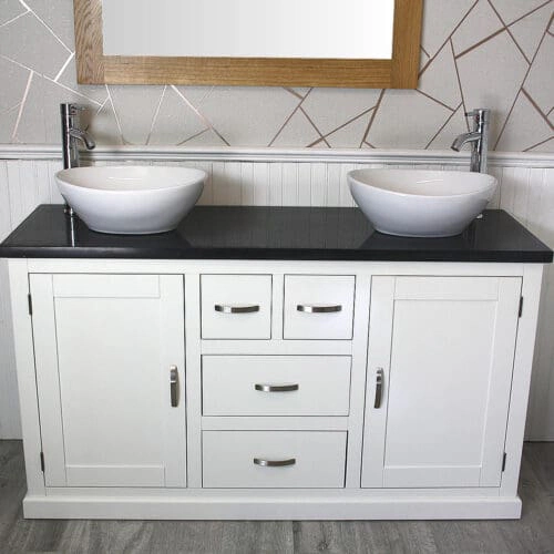Explore our selection of Double Vanity Units with Black Quartz Worktop for all Bathroom types, at Bathrooms and More store your one stop shop for Bathroom Furniture in the UK.