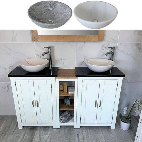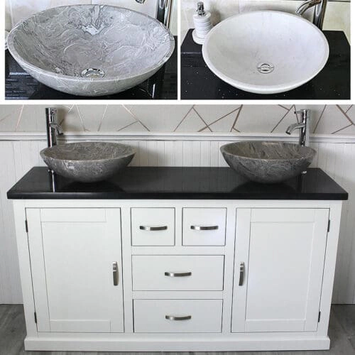White Painted Black Quartz Top Stone Basin Choice 402PBQSBCX2 | Round Grey Marble