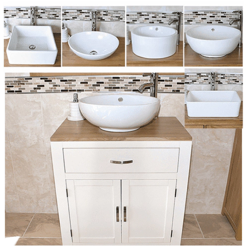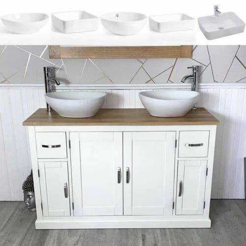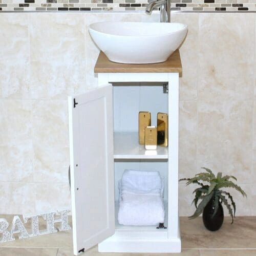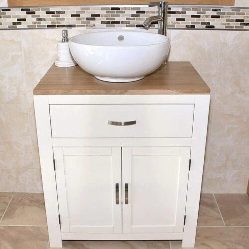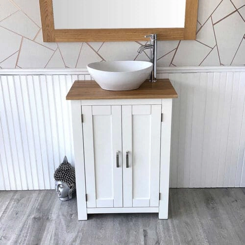White Painted Wooden Vanity Oak Top Ceramic Basin Unit 402PCBC2