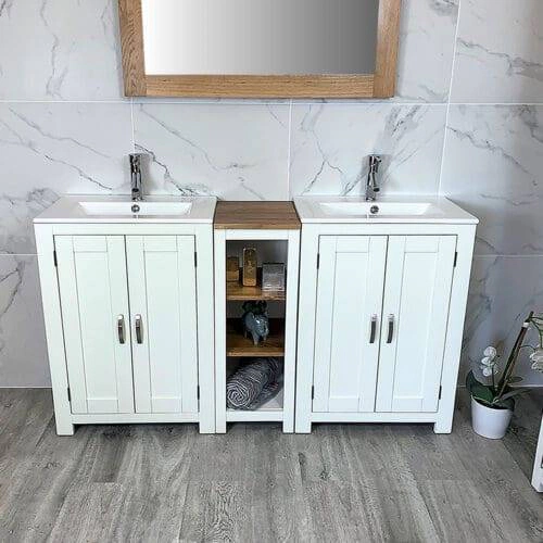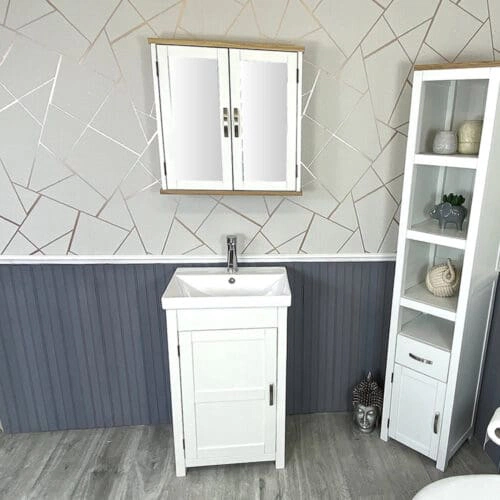 Slimline Bathroom Cabinet Vanity Unit | White Painted Furniture | Inset Sink Tap Plug 308PINSET