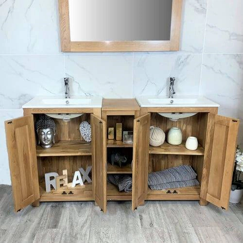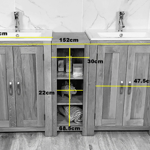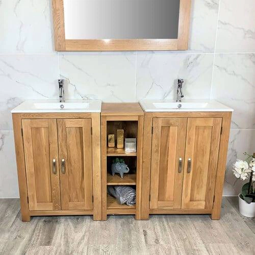 Slimline Bathroom Cabinet Vanity Unit | Solid Oak Furniture | Inset Sink Tap Plug 308INSET