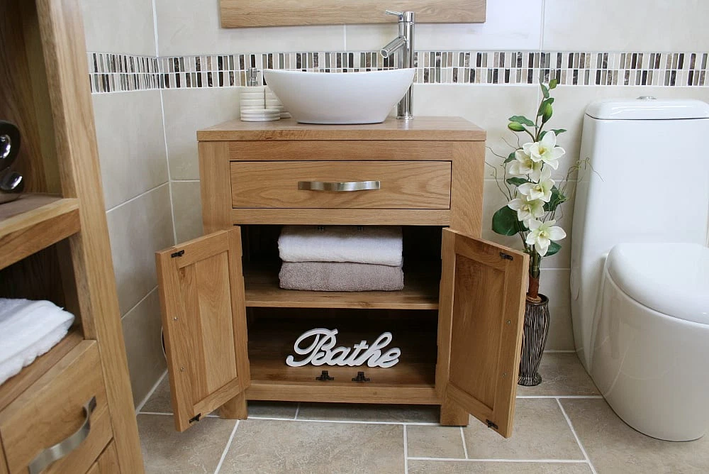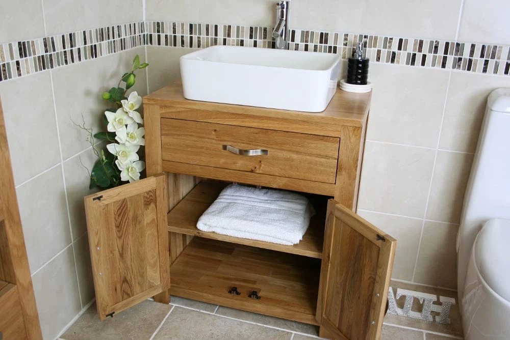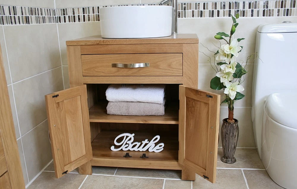 This single vanity unit is made from the best quality oak. The unit is made man by skilled carpenters to ensure that it stands the test of time and will be a proud piece of anyone’s bathroom for many years. The buyer can choose between a selection of stunning white ceramic bathroom basins to complete their favoured basin vanity unit set – the set also comes with our standard chromed mixer tap and is ready to be fitted and working on delivery. We only stock and display the very best in bathroom vanity and are proud to offer you this oak vanity unit and basin combination at an excellently competitive price.