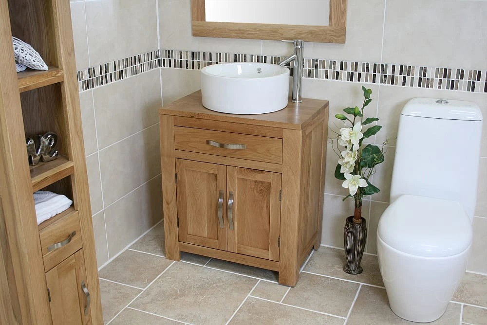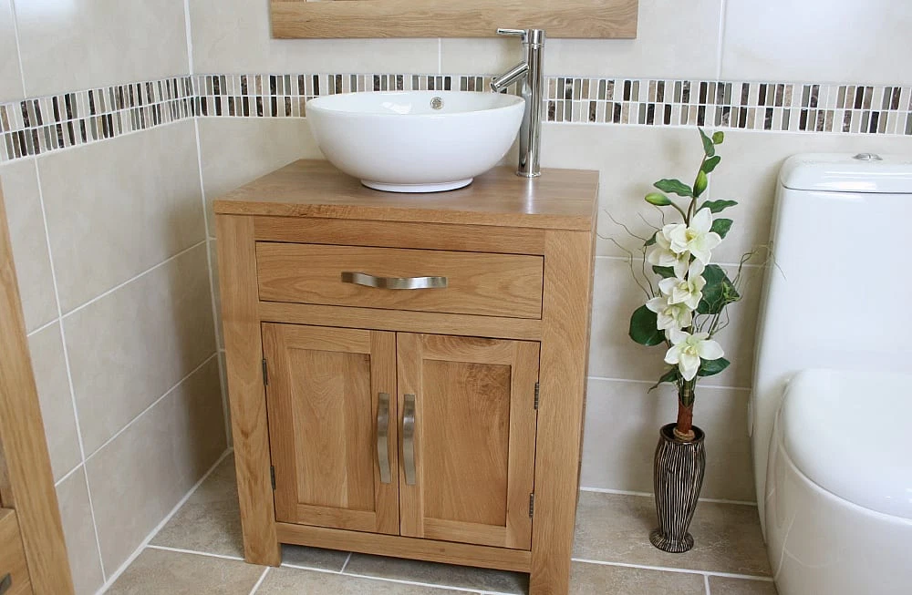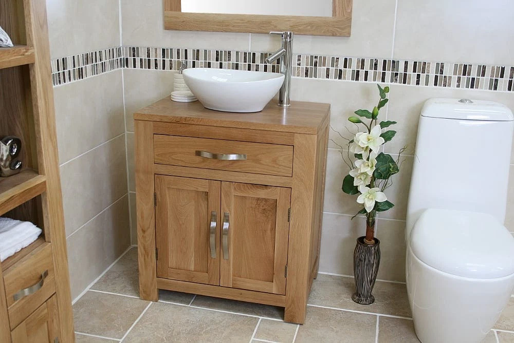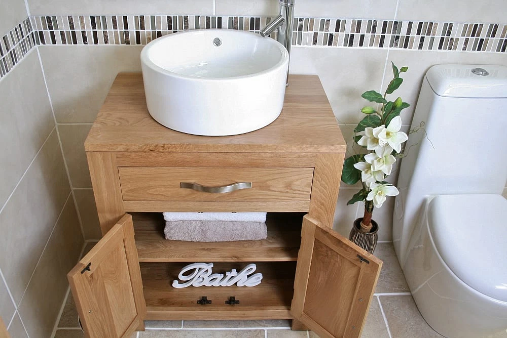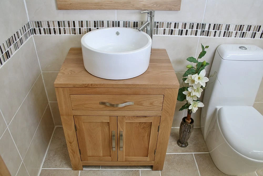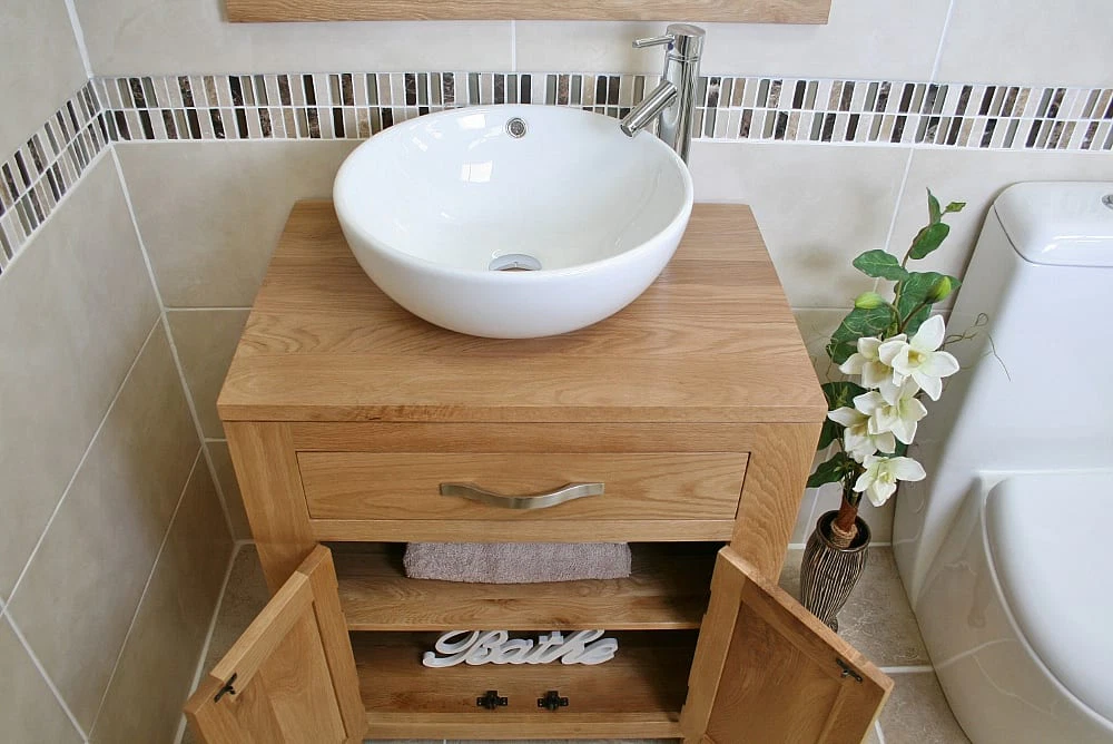 White Ceramic Vanity Basin on Solid Oak Top & Oak Vanity Unit