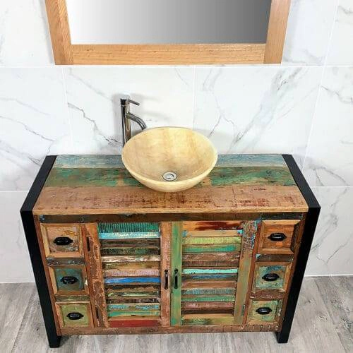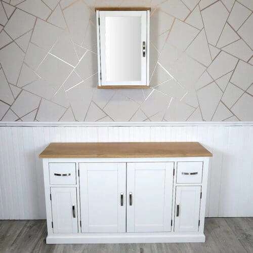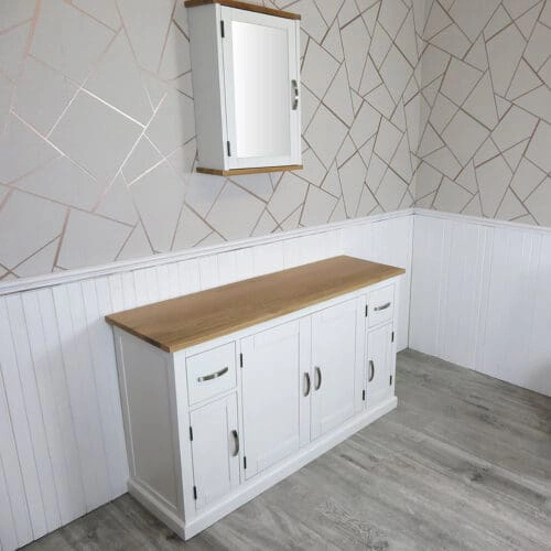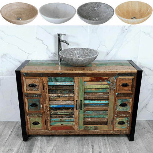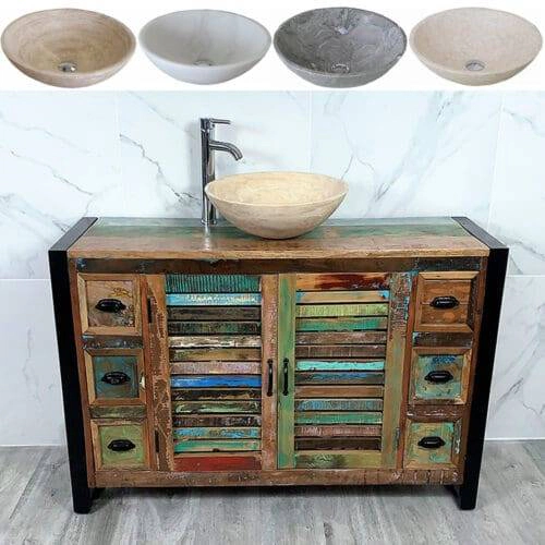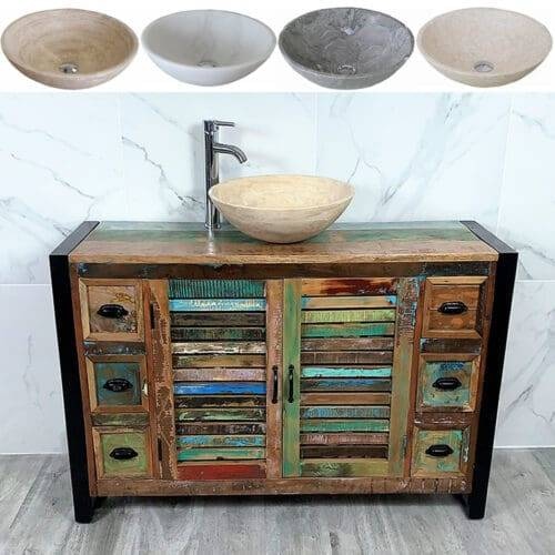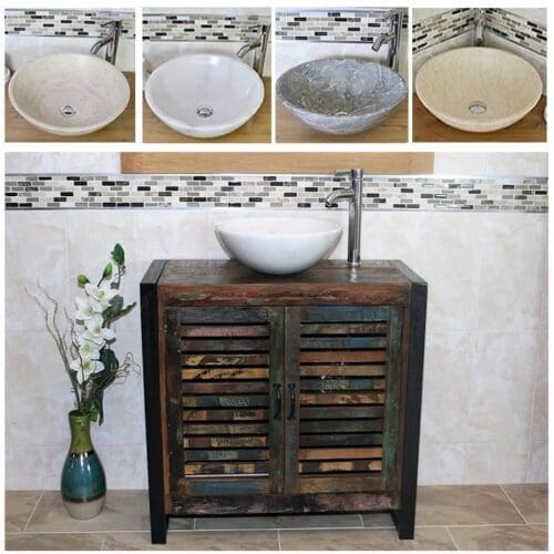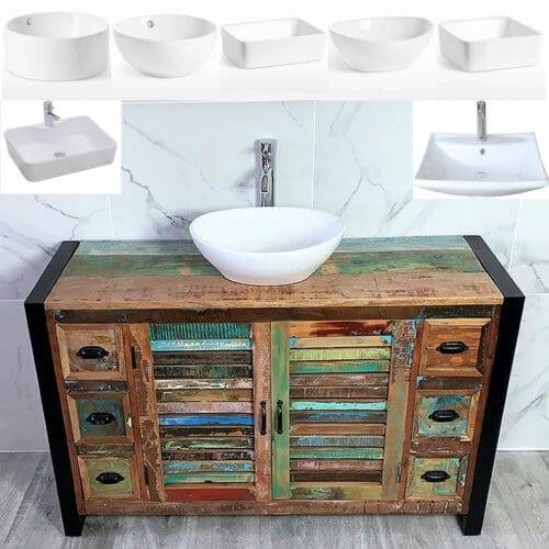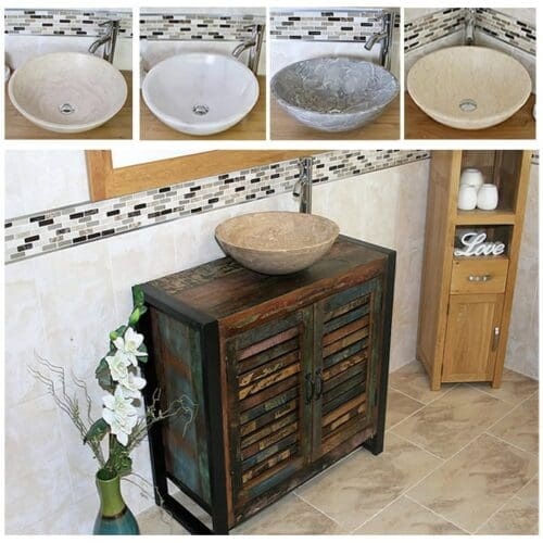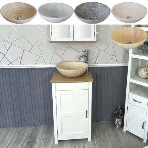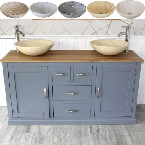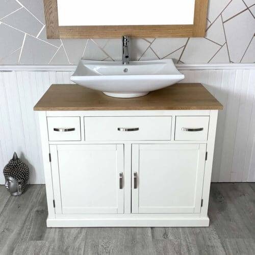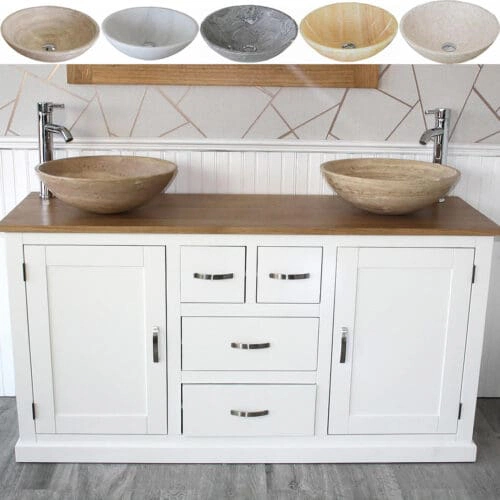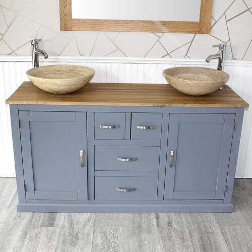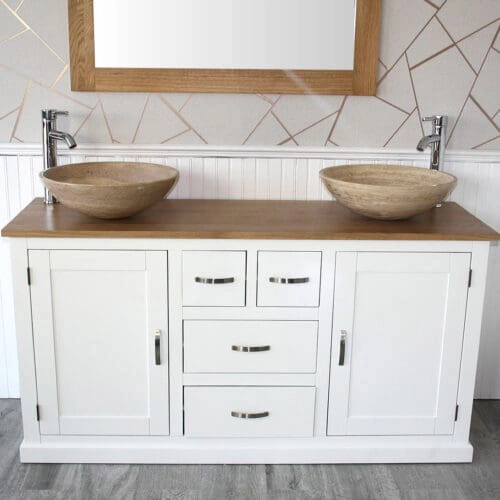 Painted solid oak topped vanity units available with a wide choice of basins from the simple beauty of ceramic & glass to the stunning nature of natural stone in a choice of colours.