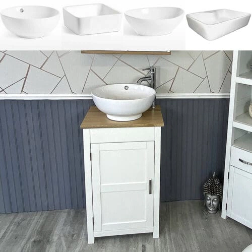 White Painted Wooden Vanity Oak Top Ceramic Basin Unit 402PCBC2