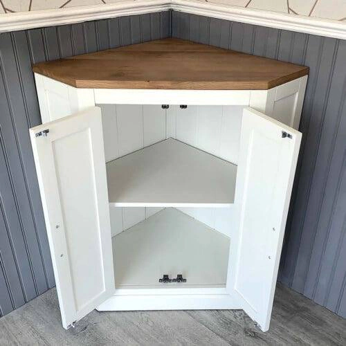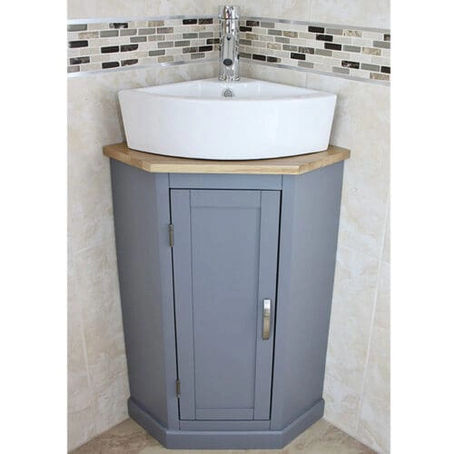 Bathroom Vanity Unit Free Standing Solid Oak, White or Grey Painted Corner Cabinet 501B